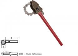 Dzięki swojej konstrukcji i rozmiarach zapewnia, dłużysz układ dźwigni przydatny przy najcięższych pracach. Narzędzie posiada kute oraz hartowane cieplnie szczęki oraz utwardzone ogniwa i sworznie łańcucha. W modelu 0107 jest możliwość odwracania szczęki.